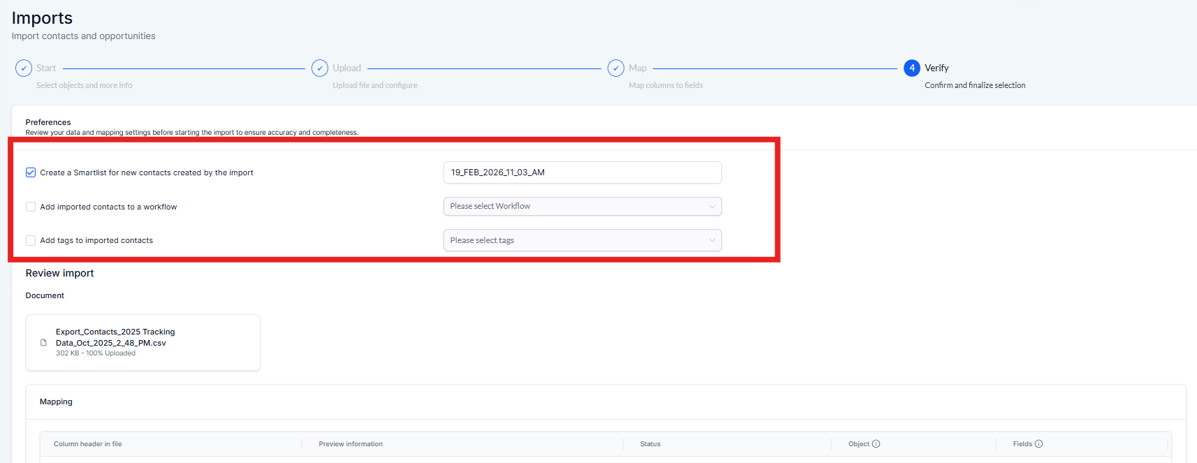 -Select the option to "Create a Smartlist of contacts by the import" , this will create a brand new smart list made up of these imported contacts.