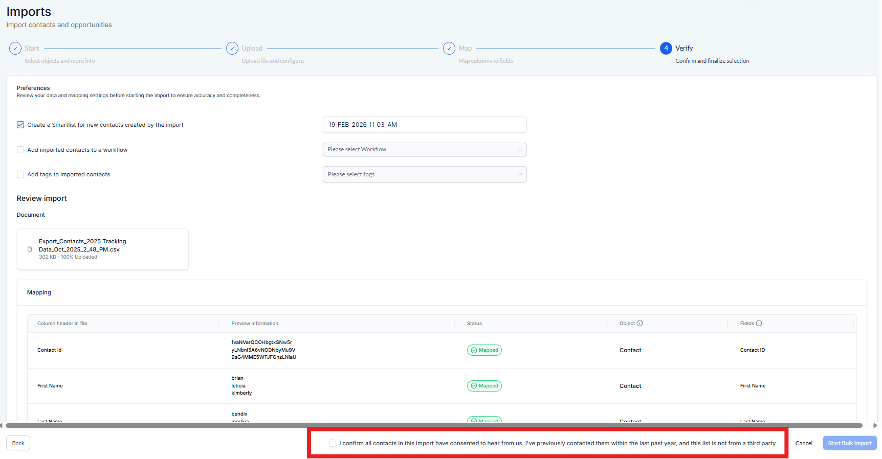 7) Confirm that the contacts you are importing, have opt-ed in to receive emails from you.