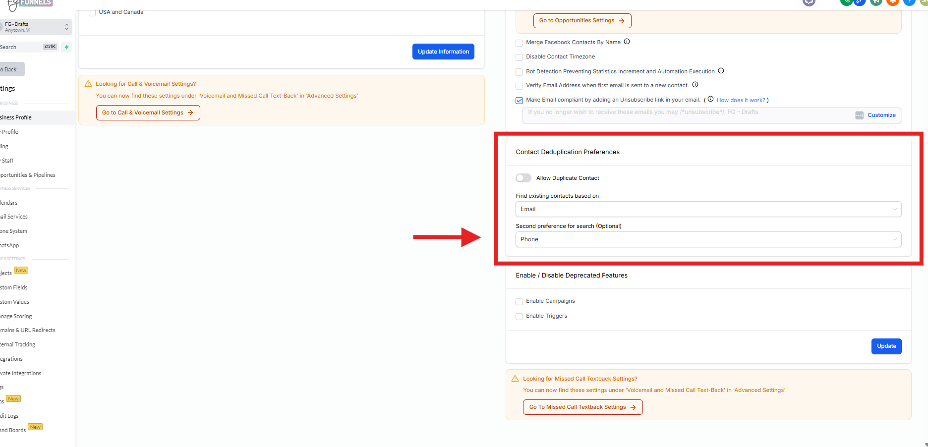 4) If you have unmatched field that do not have a standard field in the FG Funnels system, you will need to create a brand new custom field for this data to be imported. By going to Settings > Custom Fields, then come back