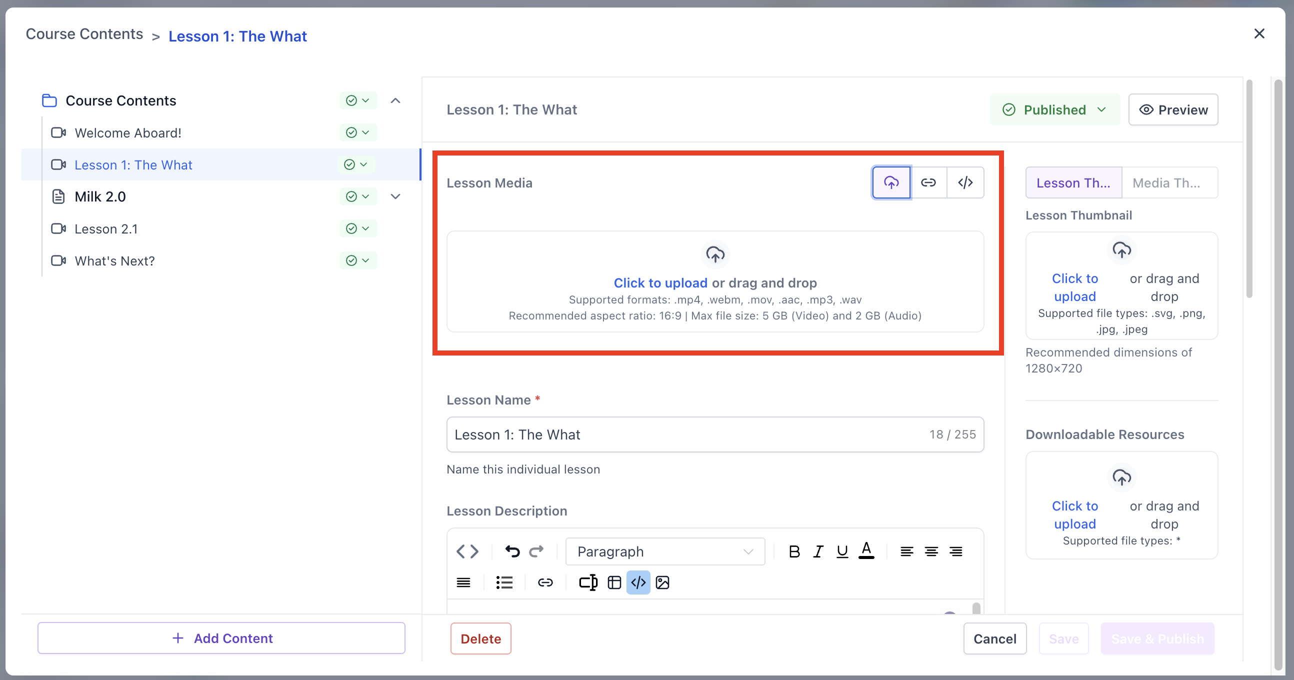 How to Embed a Single Video at the Top of Your Course Lessons Using the Upload Video Button