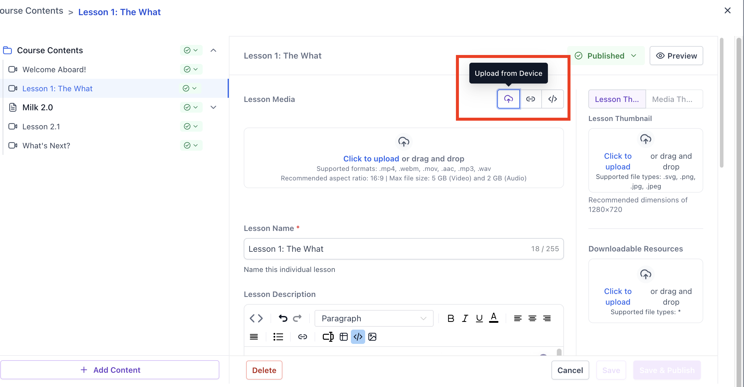 How to Upload a Single Video to Your Course Lesson Directly From Your Computer