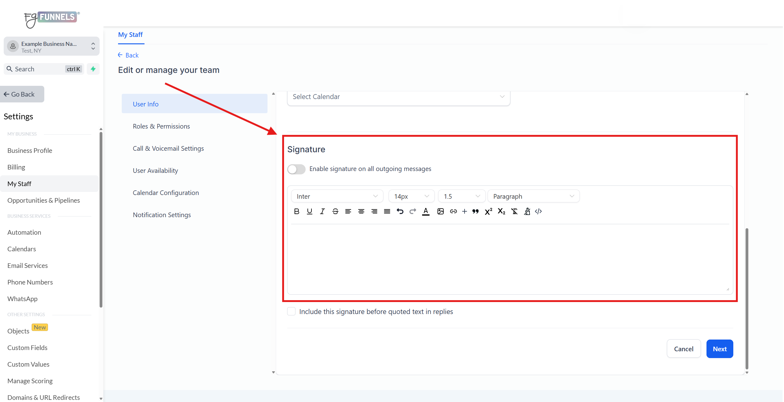 Creating an Email Signature in the Emil Builder of FG Funnels
