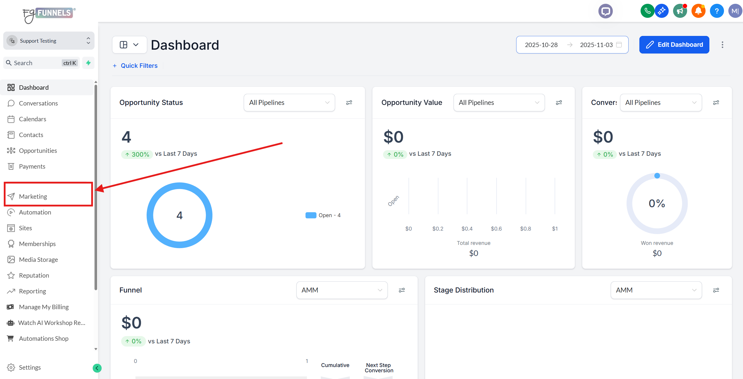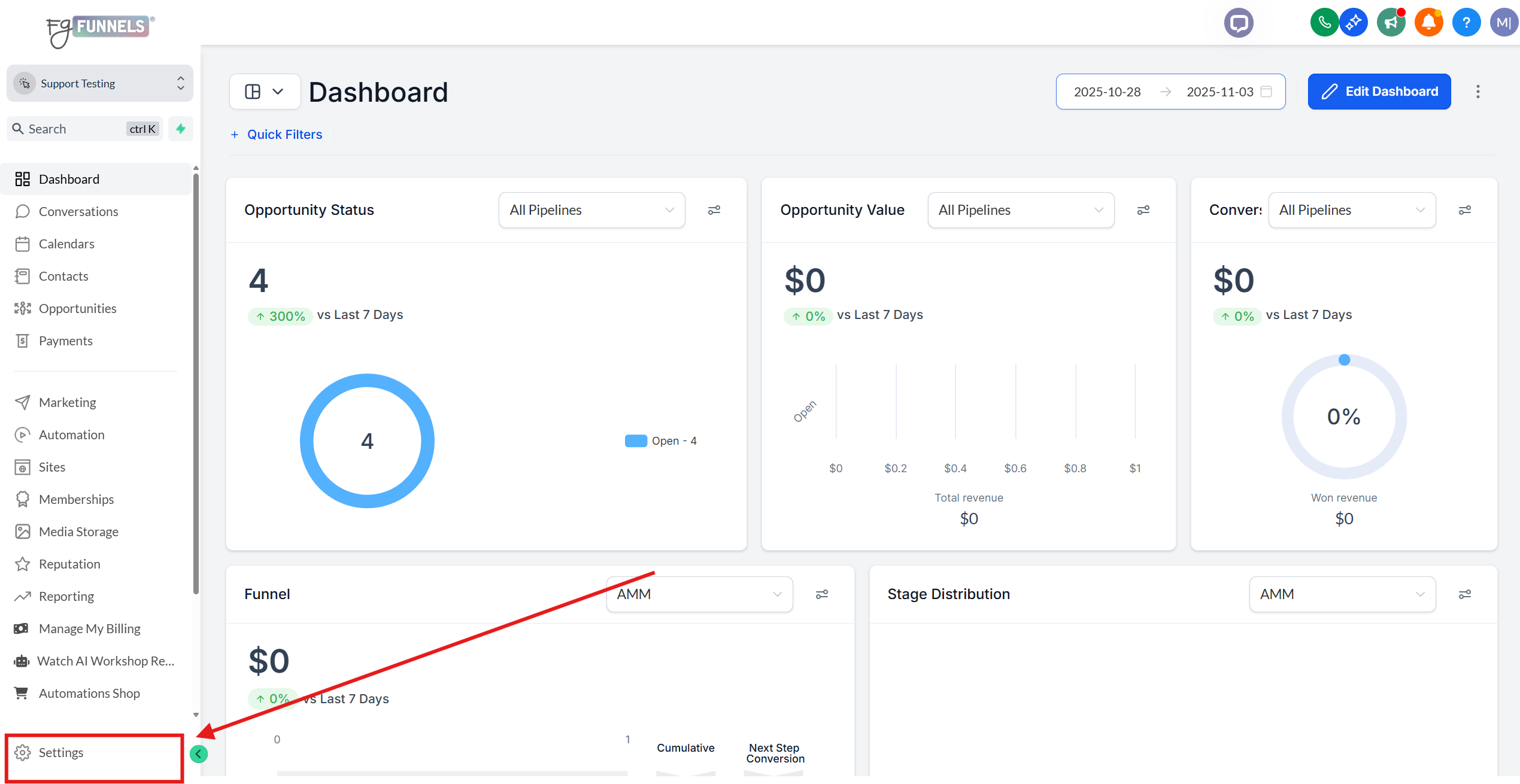 - From the dashboard of your account, click on 'Settings' the bottom left corner.