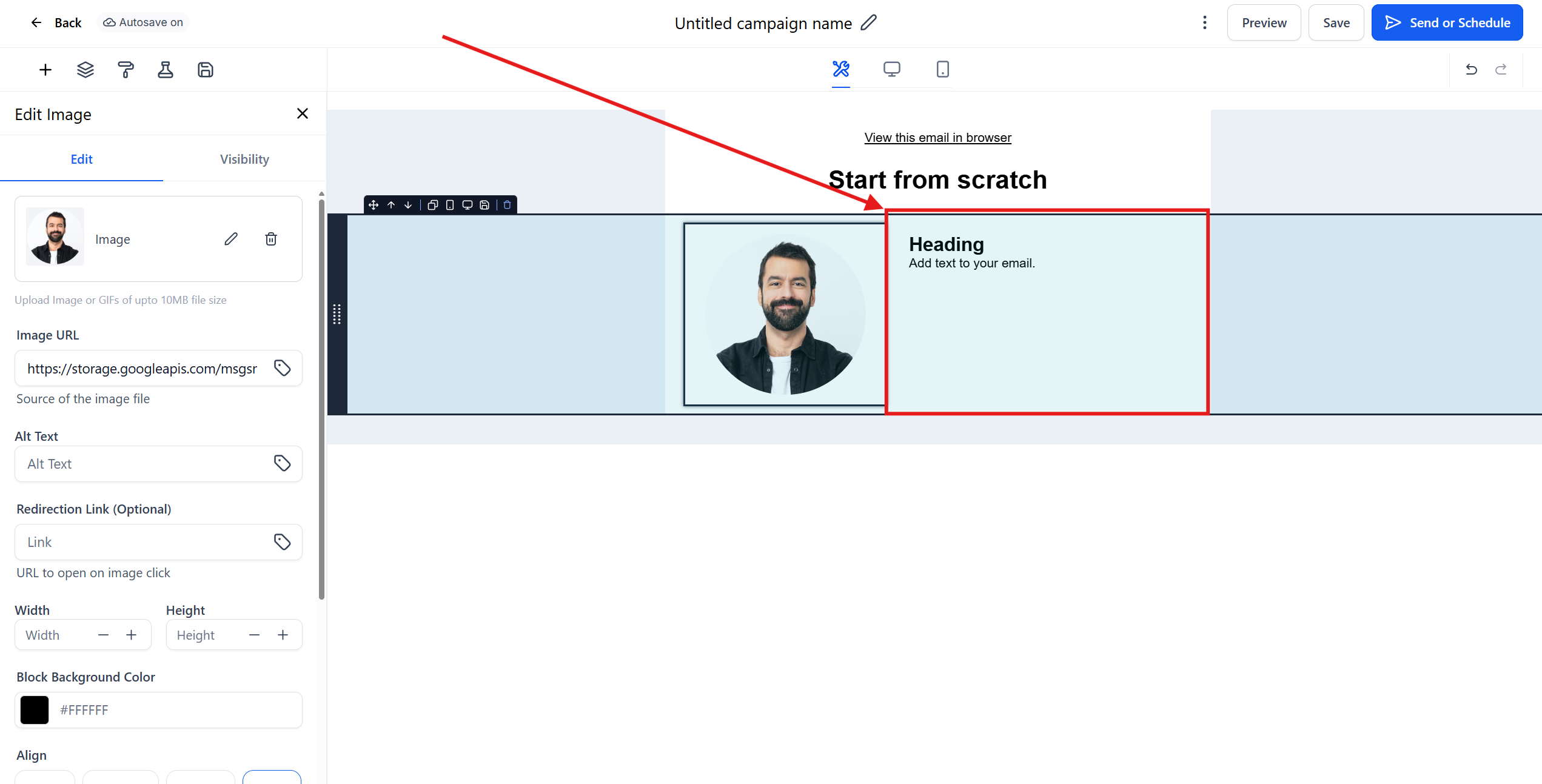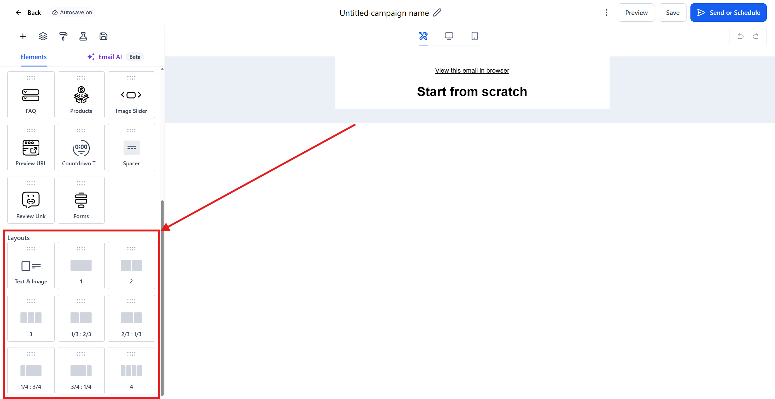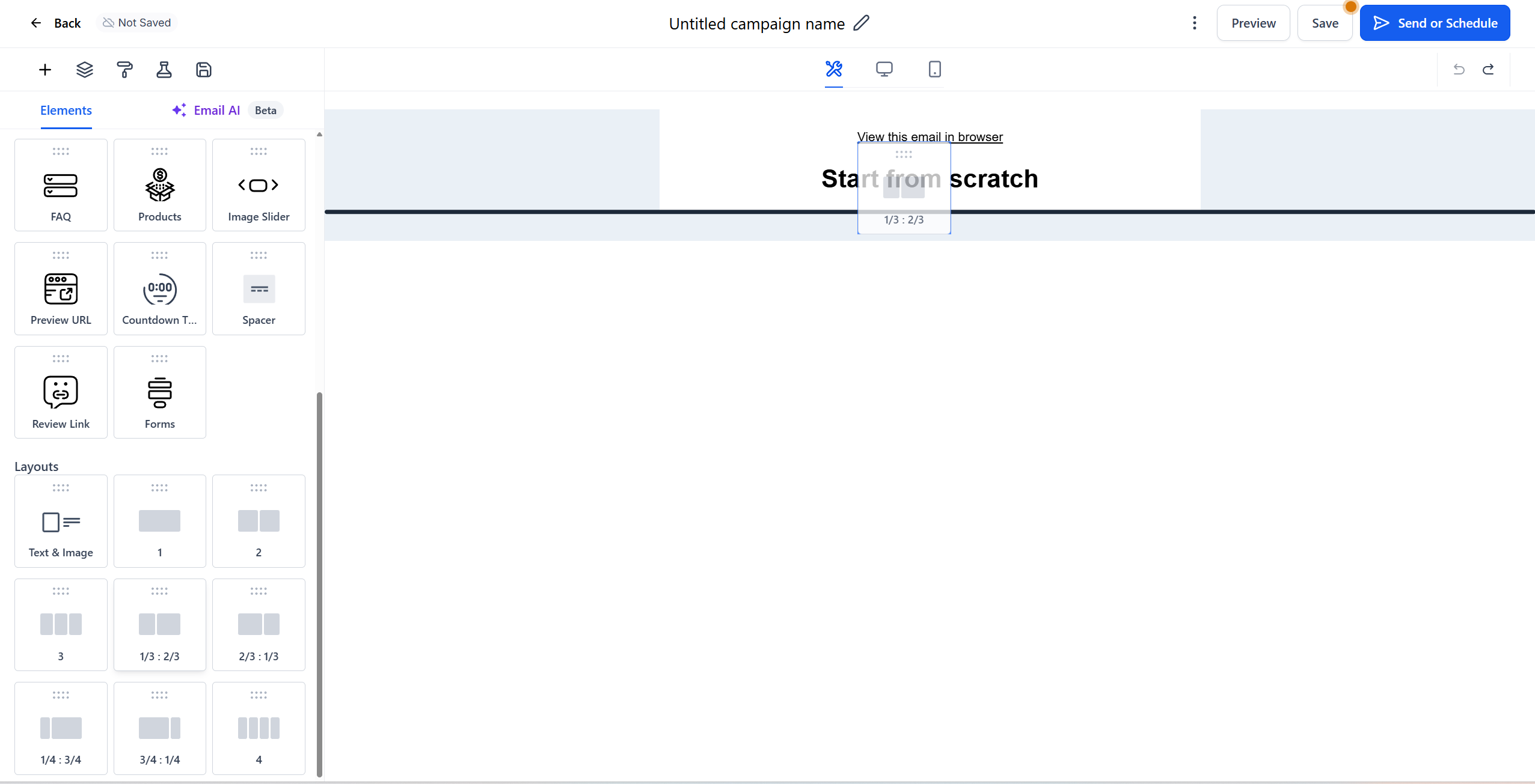 6.Choose a layout (e.g., one-third and two-thirds layout) by dragging and dropping it into the email template.