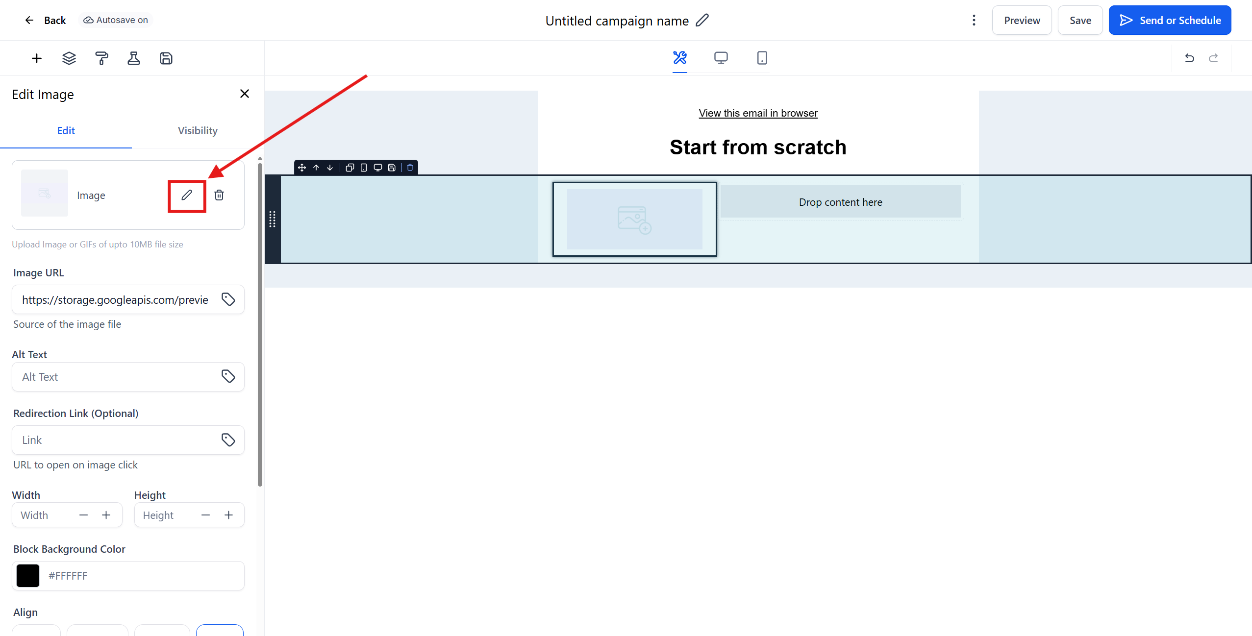 - Click the pencil icon to choose an image from your media storage or upload a new image from your computer.