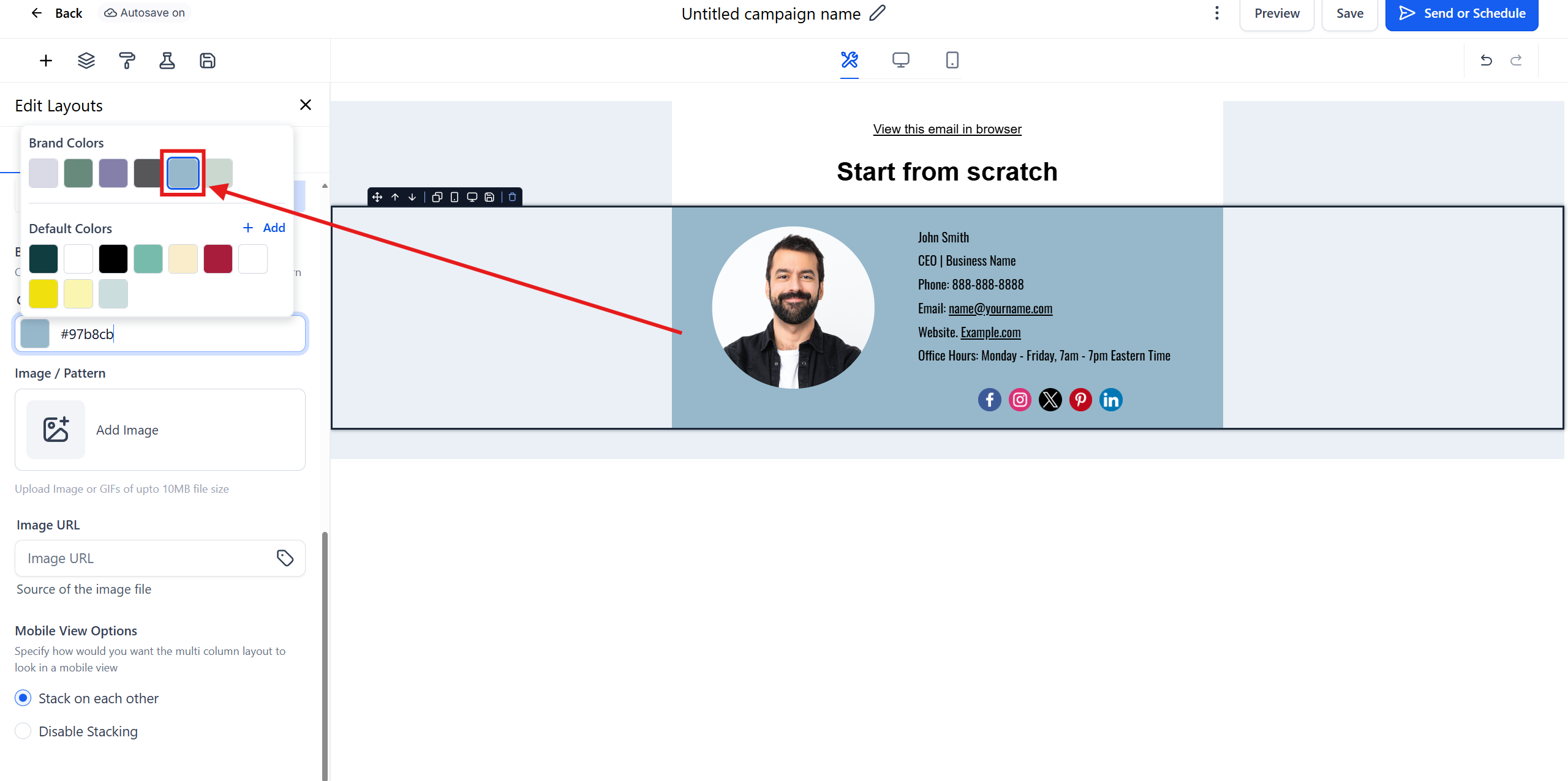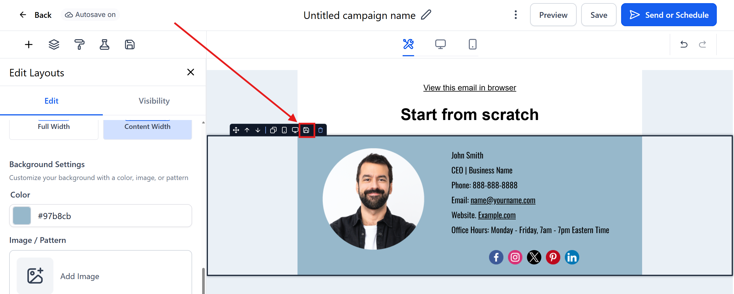 - You can create an email signature within the email builder in the Marketing > Emails section.