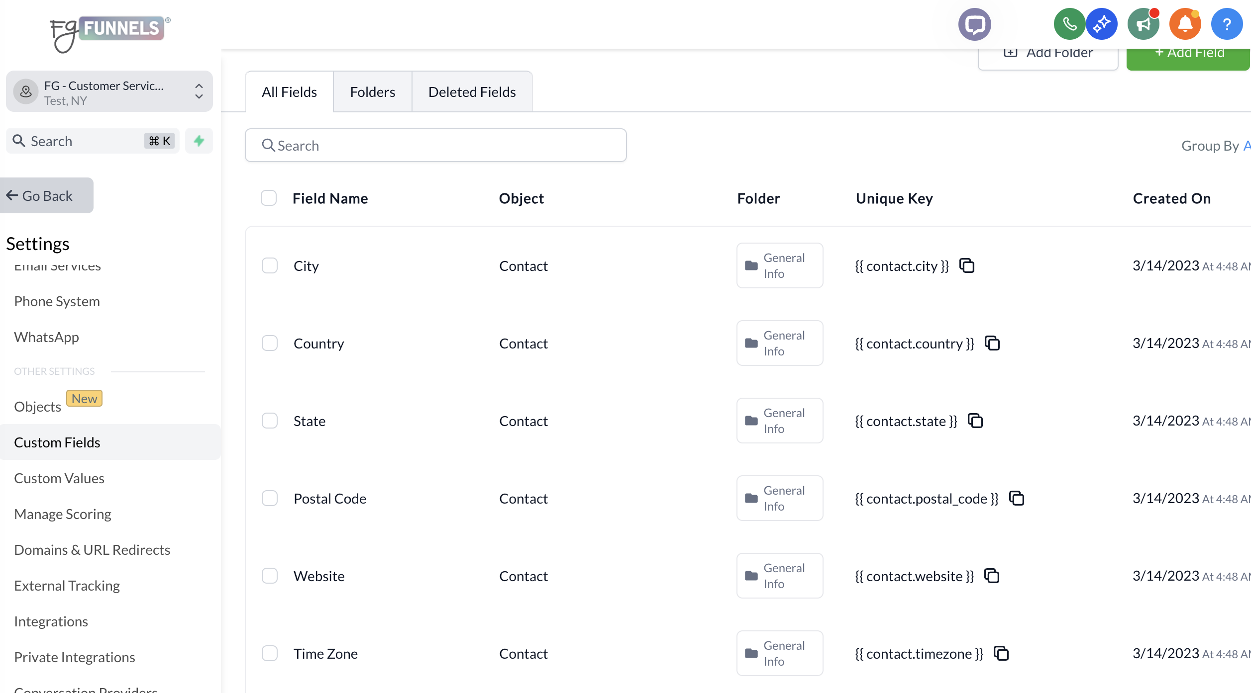 Objects store your data in your CRM. The standard objects that come with your FG Funnels® account are Contacts, Companies, and Opportunities.
