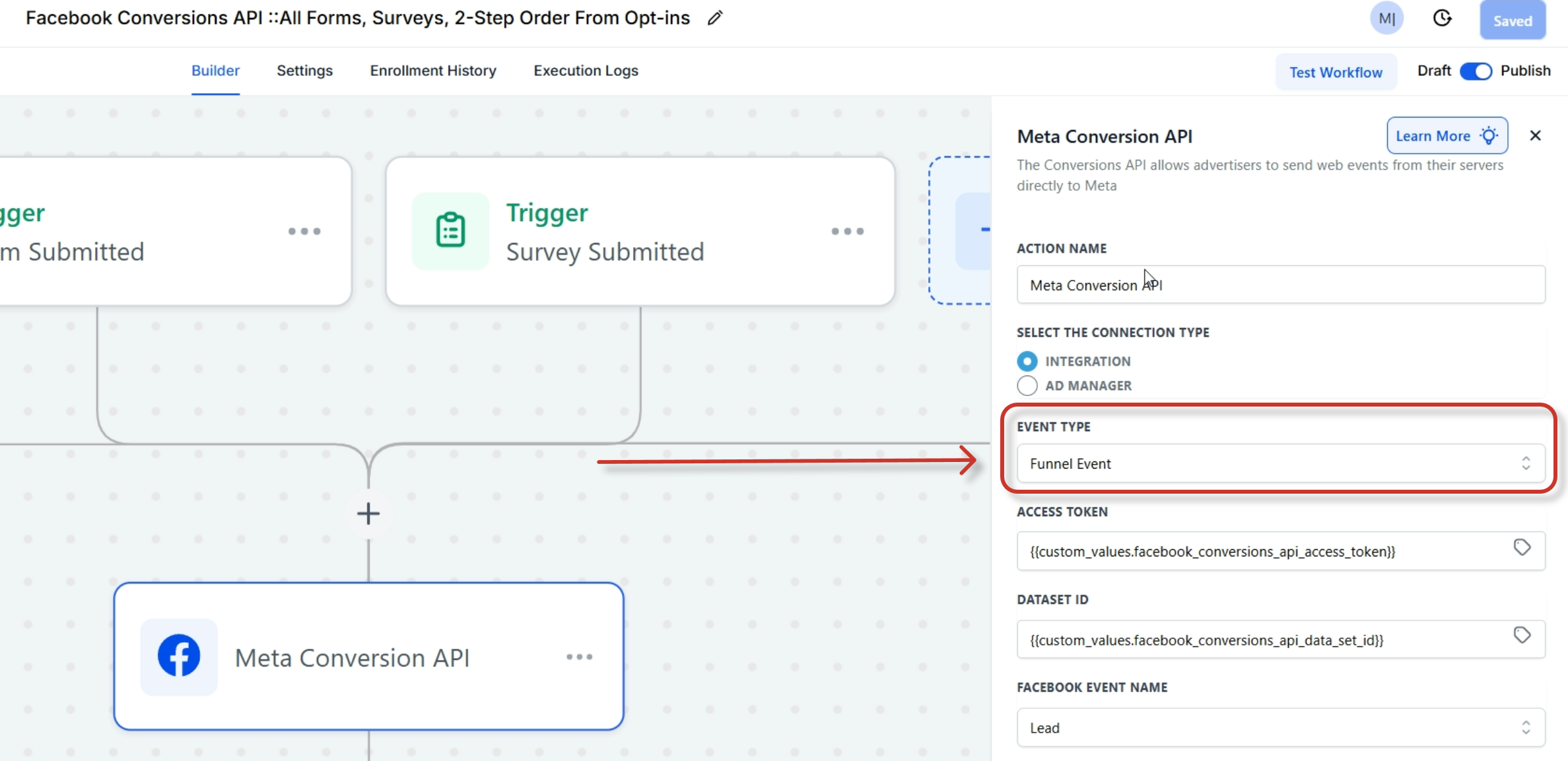 How to Set Up a Funnel Event Pixel for Facebook Conversion API and Set up The Facebook Conversions API Inside of a Workflow