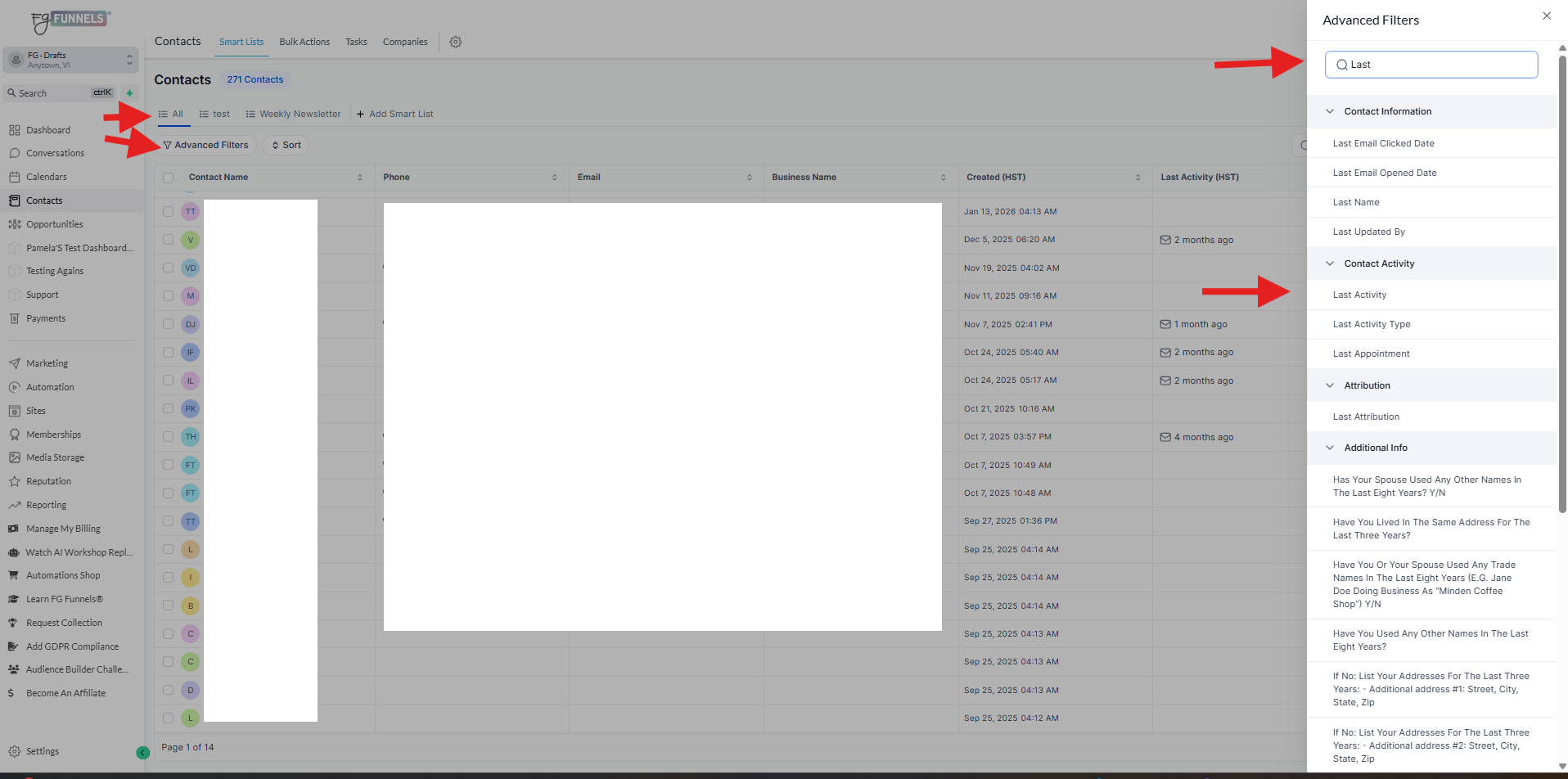 - To access your Smart Lists, go to the Contacts section and select a Smart List name from the top to open it.