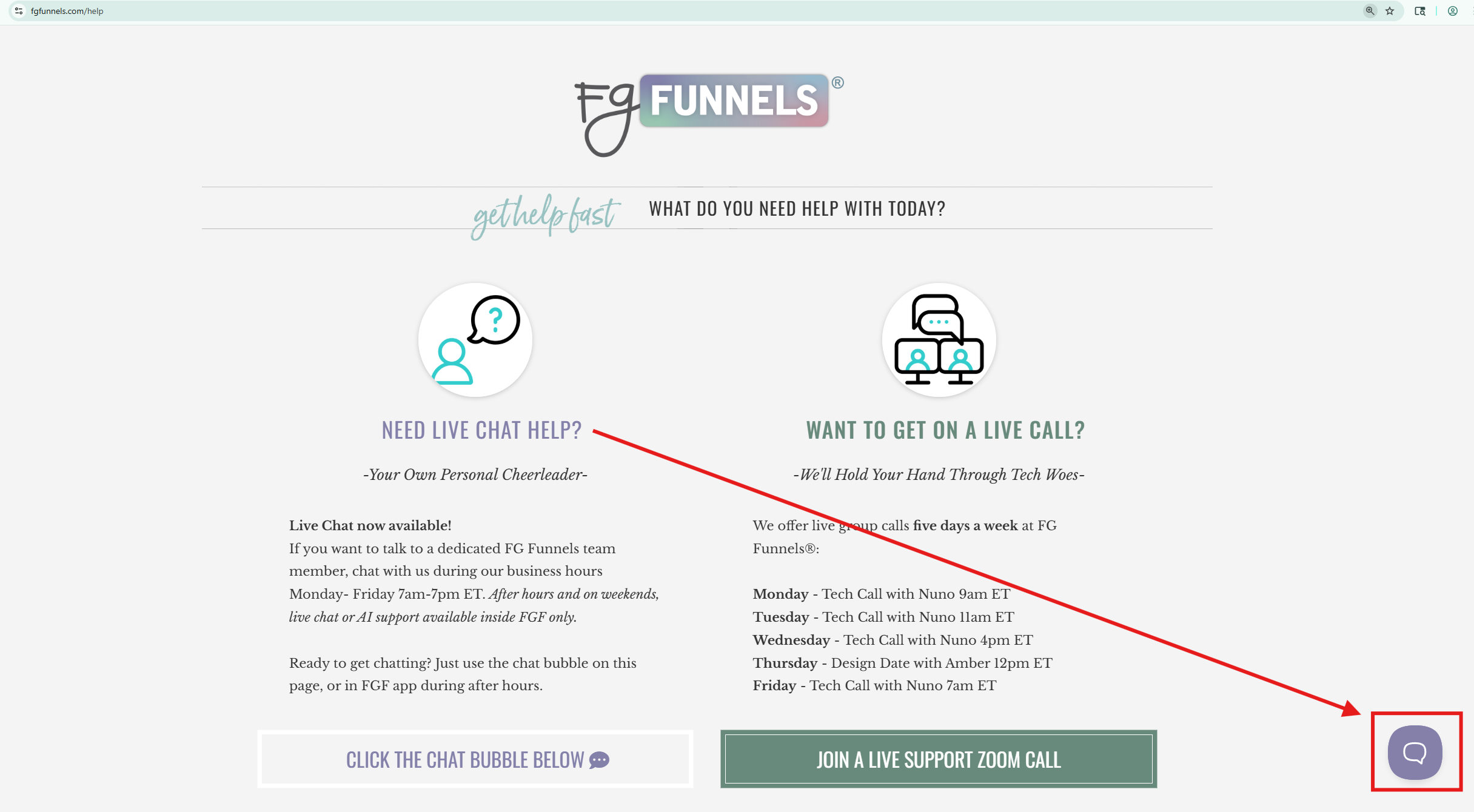 - You can also access the live chat here: https://www.fgfunnels.com/help