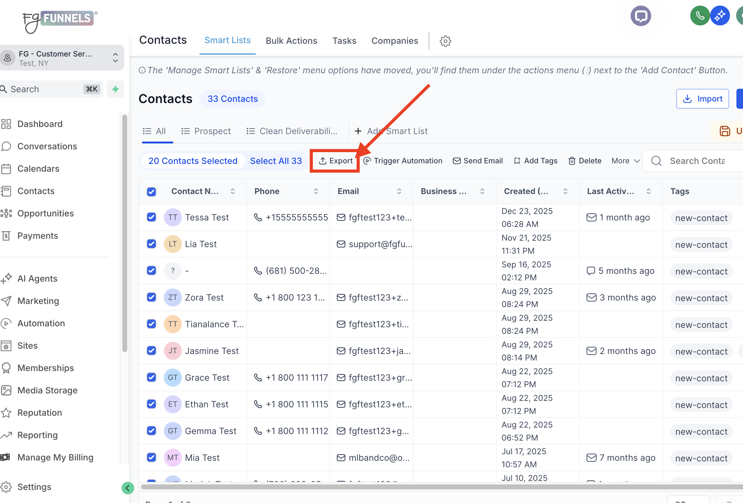 Only sub-account admins and location admins have the privilege to export contacts, ensuring secure access and control over sensitive contact information. This restriction helps maintain data integrity and prevents unauthorized usage of contact data.